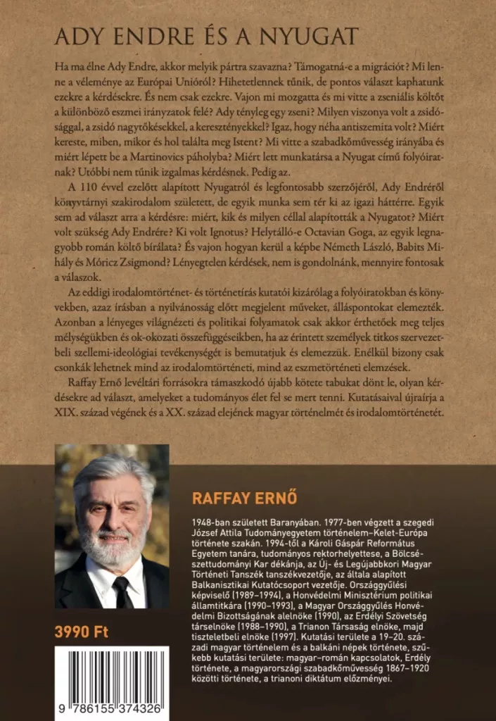 Raffay Ernő levéltári forrásokra támaszkodó újabb kötete tabukat dönt le, olyan kérdésekre ad választ, amelyeket a tudományos élet fel se mert tenni. Kutatásaival újraírja a XIX. század végének és a XX. század elejének magyar történelmét és irodalomtörténetét.